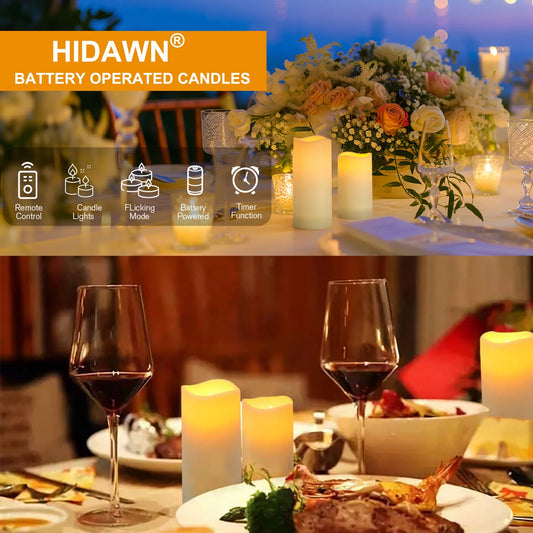 Flameless Pillar Candles with Remote,9 Pack Outdoor Large LED Fake Candles Battery Operated Elect...